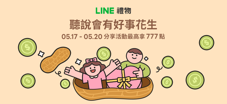 LINE禮物|聽說會有好事花生,分享活動最高拿777點 👉點我前往分享